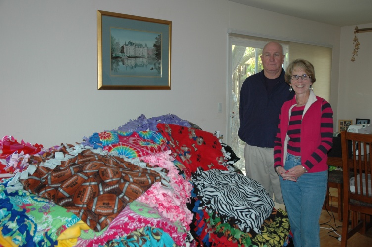 (SRV Thunderbirds representatives Dennis and Linda Brady are pictured below with the blankets SRVT delivered.)