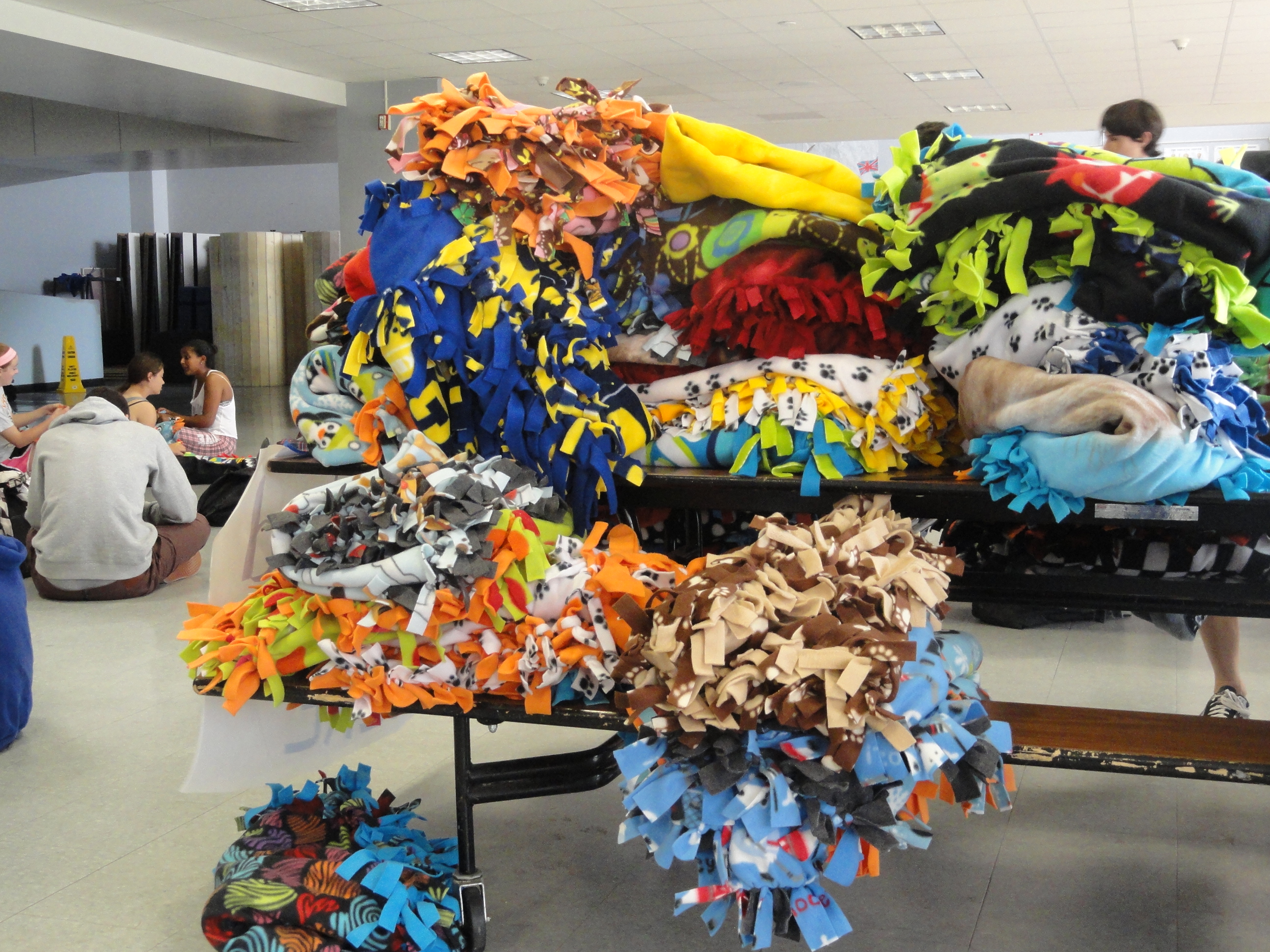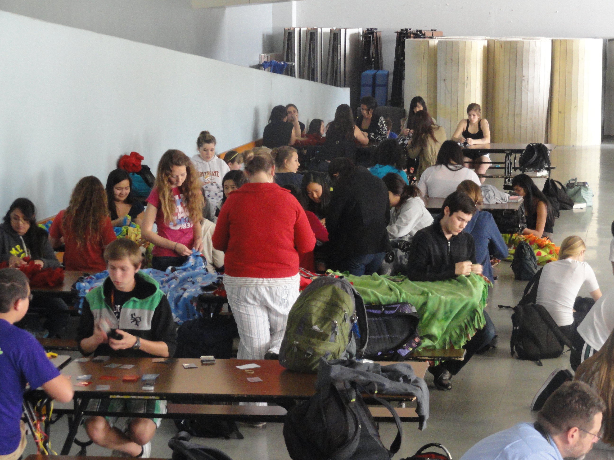 On Thursday, March 14, the Northgate High School cafeteria was transformed into the fourth annual Northgate Blanket Making Festival. A full house of cheerful, enthusiastic students and friends created 100 tie blankets in less than an hour. The blankets will go to patients of Children’s Hospital & Research Center Oakland, helping to carry on Trevor Tonsing’s legacy of warmth.