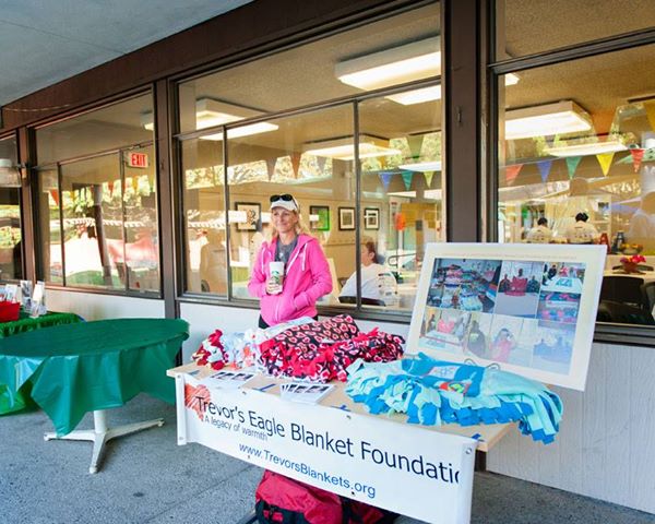 Trevor’s Eagle Blanket Foundation joined our friends at Las Trampas for their fourth annual Walk ‘n’ Roll in Lafayette on September 28, 2013 (pictured, Anita Tonsing staffing our table). Las Trampas clients have been providing valuable assistance to the Foundation by precutting some fleece for events.