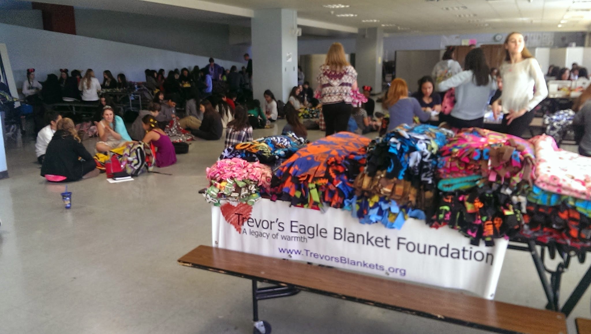 The sixth annual Northgate Blanket Making Festival, honoring Trevor’s Eagle Blanket vision, took place Thursday, February 26, in the cafeteria at Northgate High School in Walnut Creek. Students at Trevor’s former high school, along with family, friends and faculty, got together to make 150 blankets for Children’s Hospital Oakland.