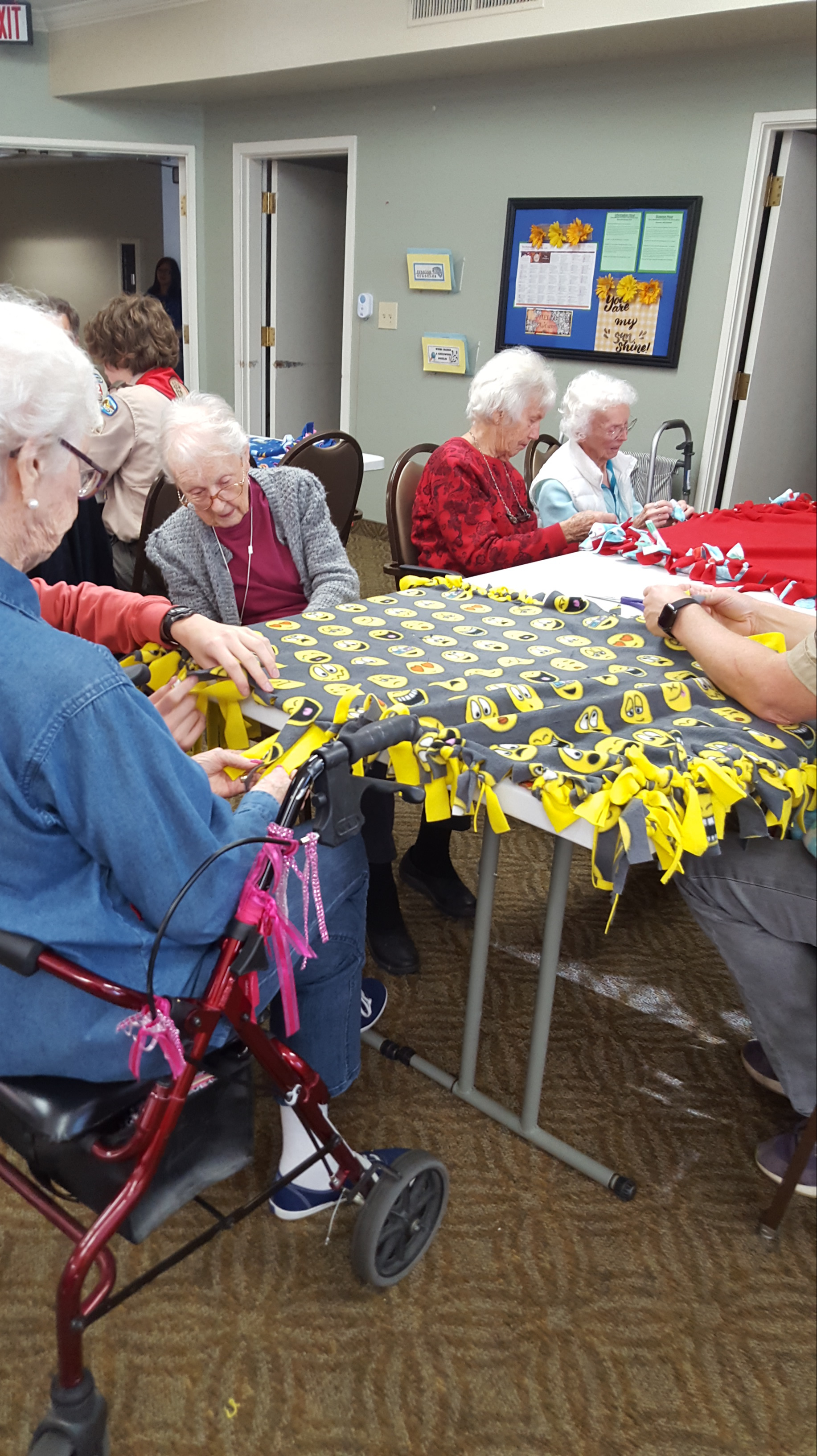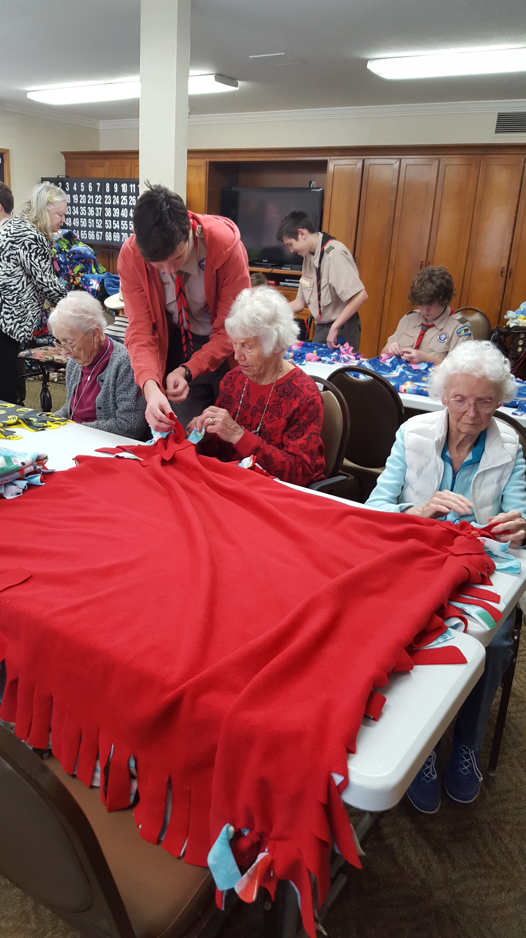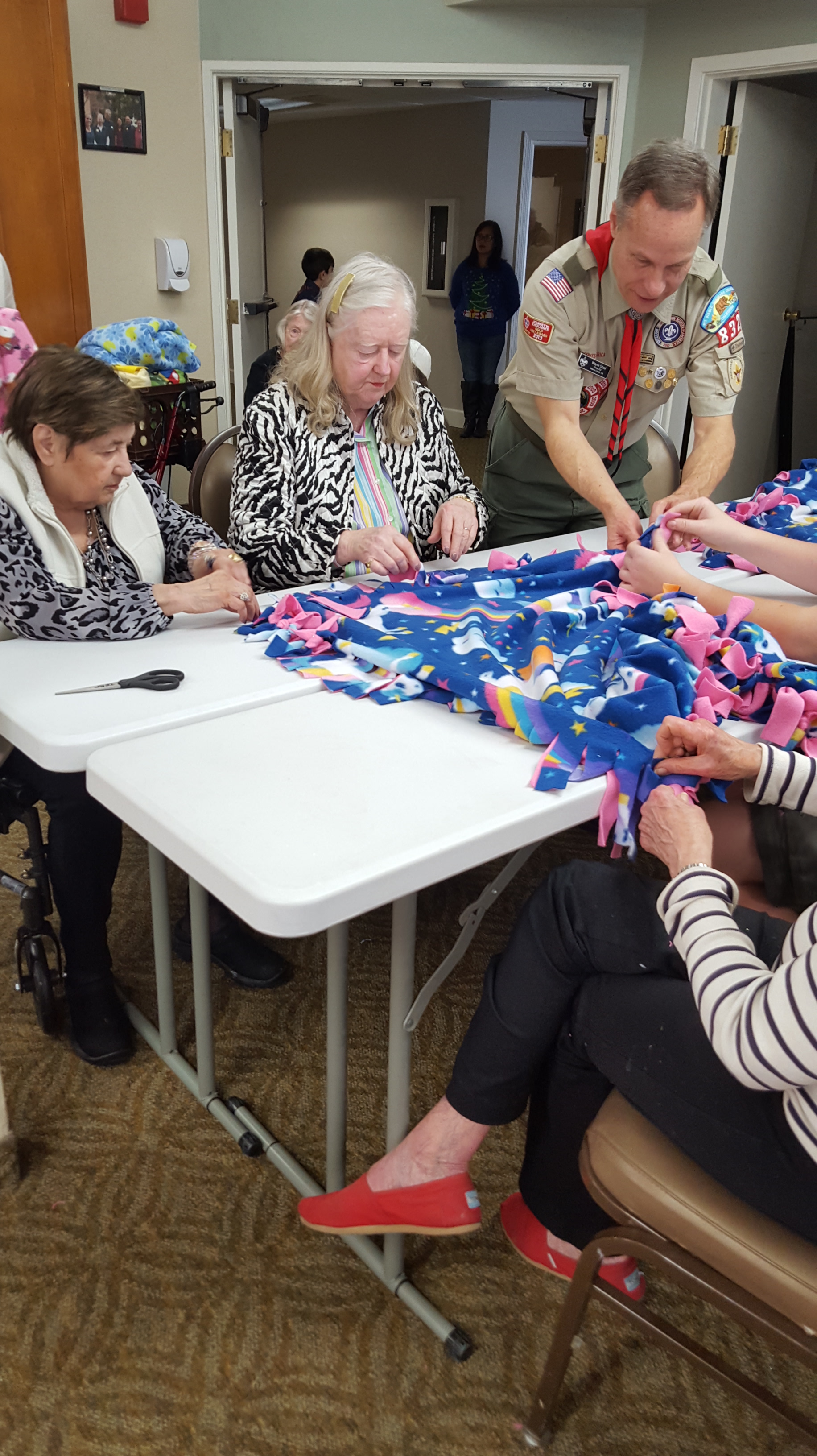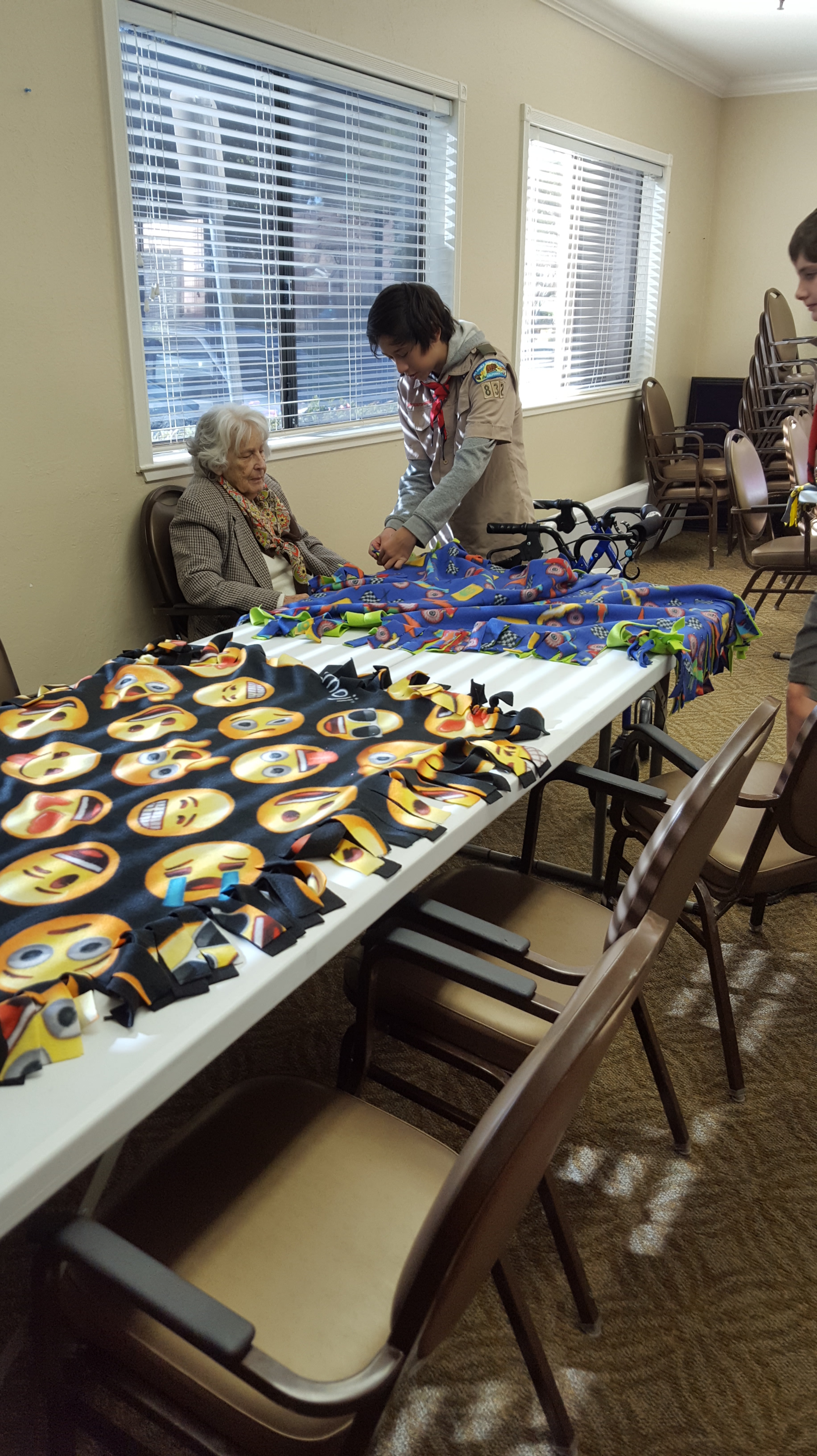 On Saturday, December 1, Troop 832 made their sixthannual blanket making trip to the Kensington Assisted Living Facility in Walnut Creek. This sharing event was as warm and successful as each of the previous years.