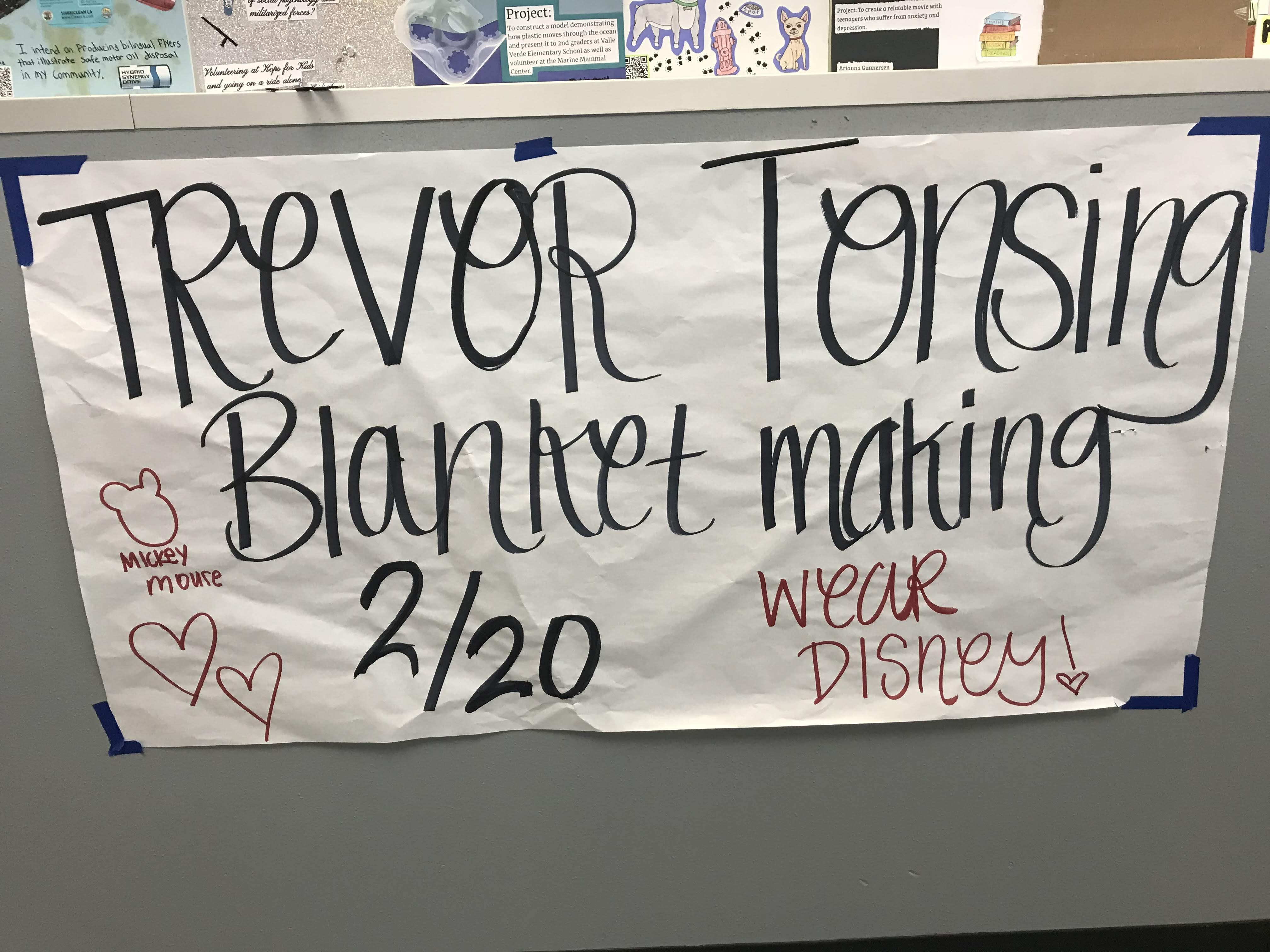 The tenth annual Northgate Blanket Making Festival, honoring Trevor’s Eagle Blanket vision, took place Wednesday, February 20, at Northgate High School in Walnut Creek. Students at Trevor’s former high school, along with family, friends and faculty, came together to make nearly 98 blankets for Children’s Hospital Oakland, bringing the total to 5,427.