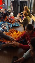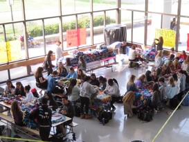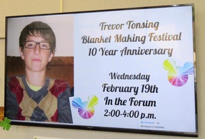 The eleventh annual Northgate Blanket Making Festival, honoring Trevor’s Eagle Blanket vision, took place Wednesday, February 20, at Northgate High School in Walnut Creek. The occasion was well organized and well attended, and all had a fun time. 122 fleece tie blankets were crafted, bringing the total blankets contributed figure to 5,743.